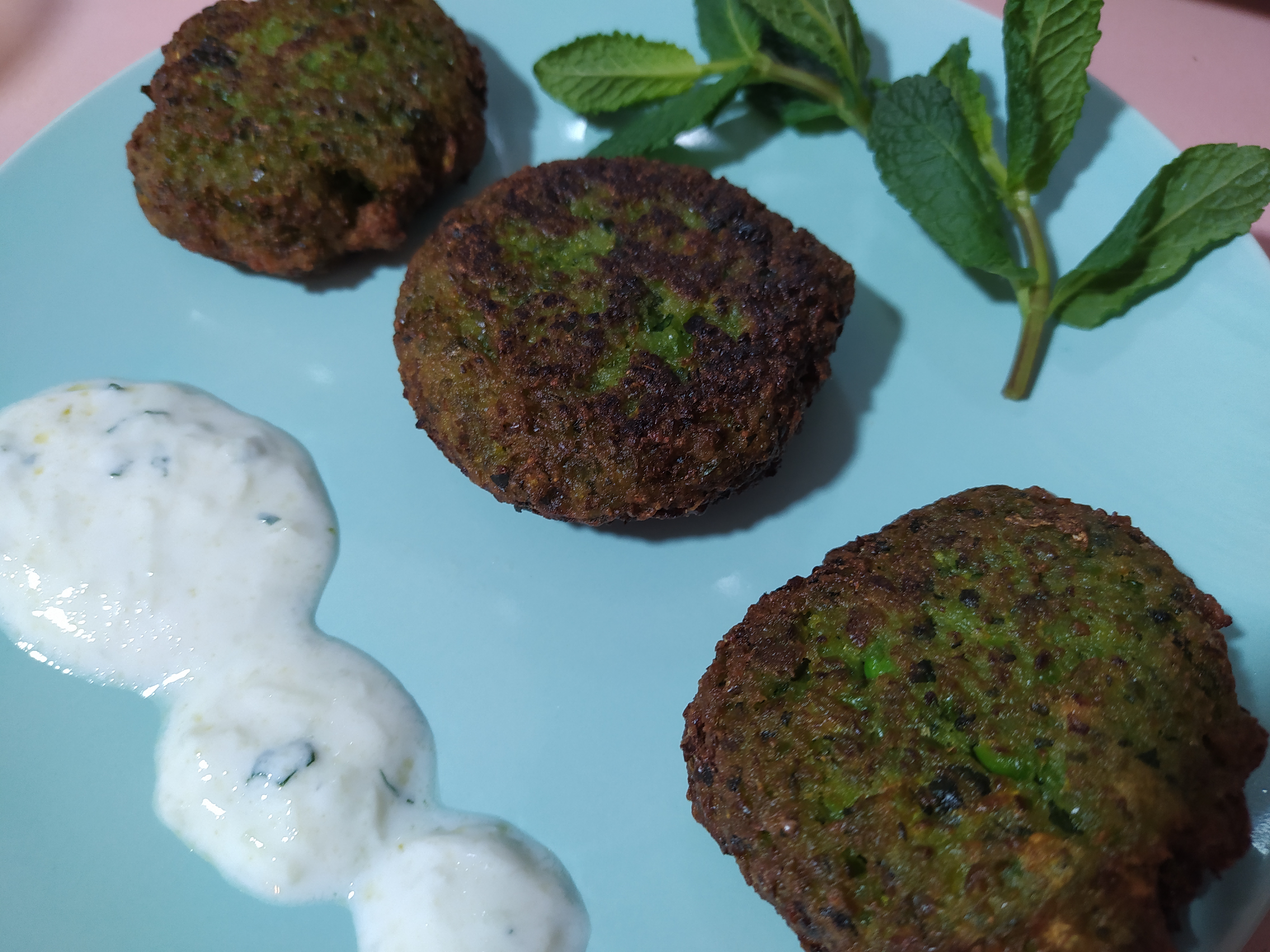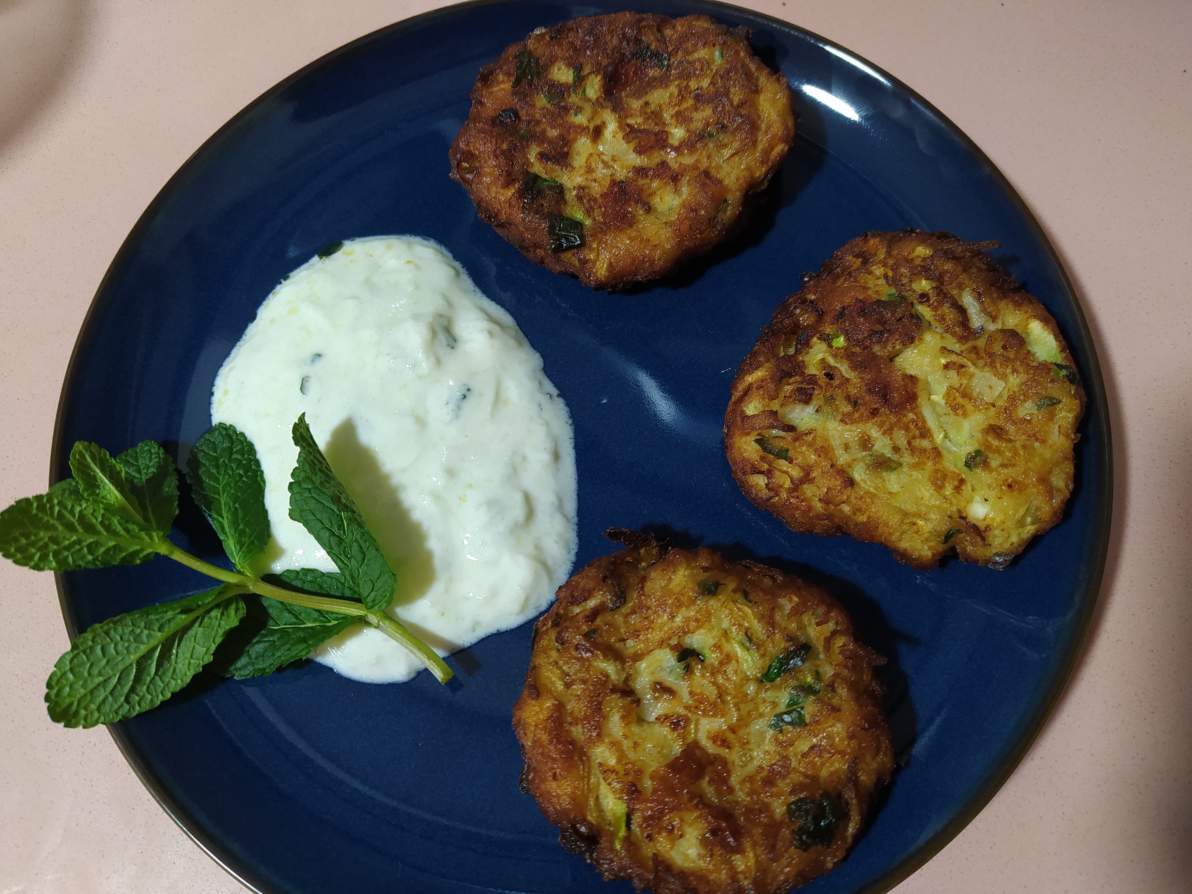 Como platos contundentes hice unos falafeles de guisante y unos buñuelos de calabacín acompañados de una salsa de yogur y pepino. En la entrada de los buñuelos podéis encontrar la receta de la salsa.